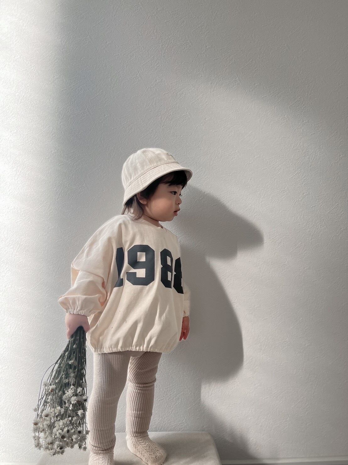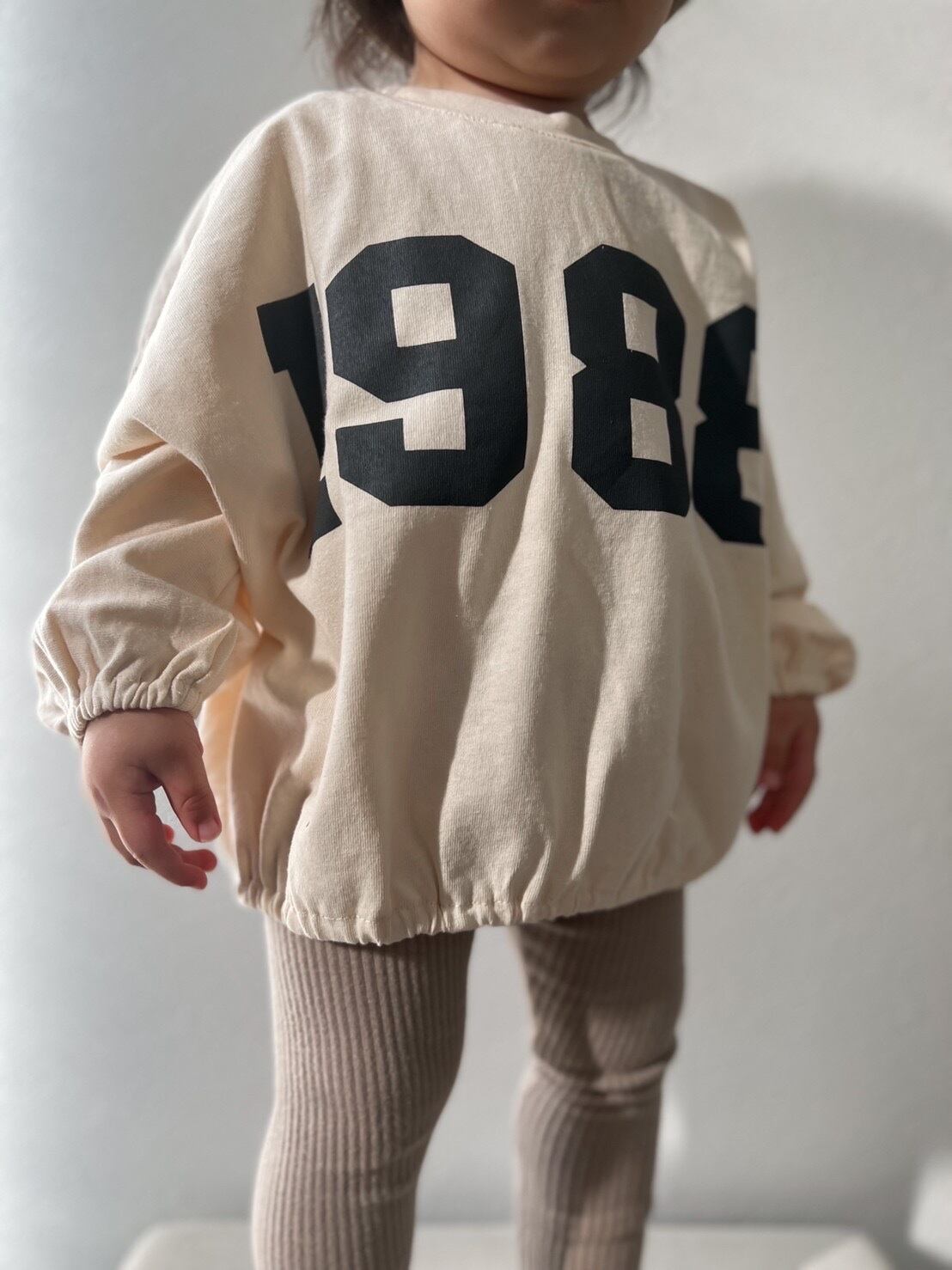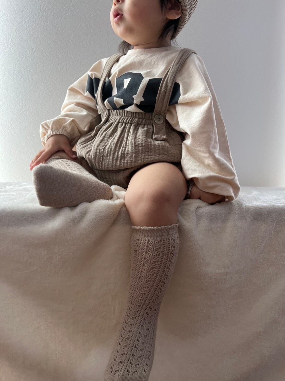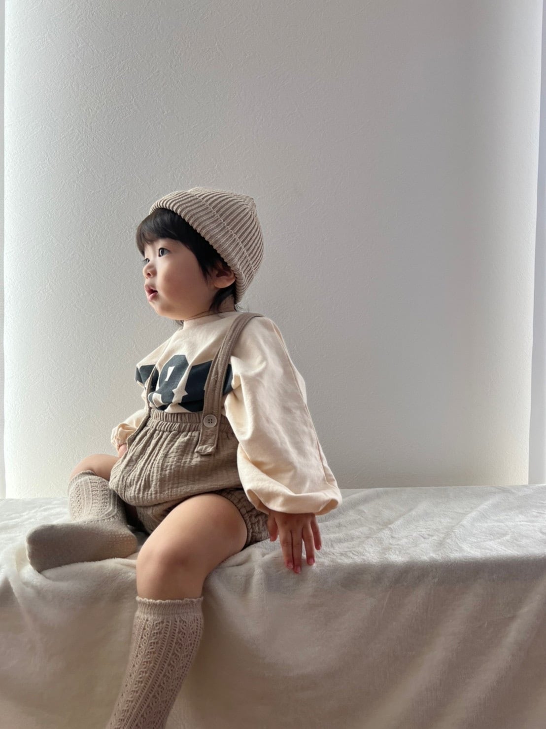 即納商品です♩ ◎商品名 amis.select/1988 t ◎カラー ベージュ/グレー ◎サイズ 80/90/100 ベージュmodel 【1y7m 80cm 11kg 90サイズ】 手首と裾がゴムになっているので 邪魔になることがなく遊ぶことができます◎ 薄すぎずしっかりしたコットンです♡ ご購入前にinformationをご覧ください。